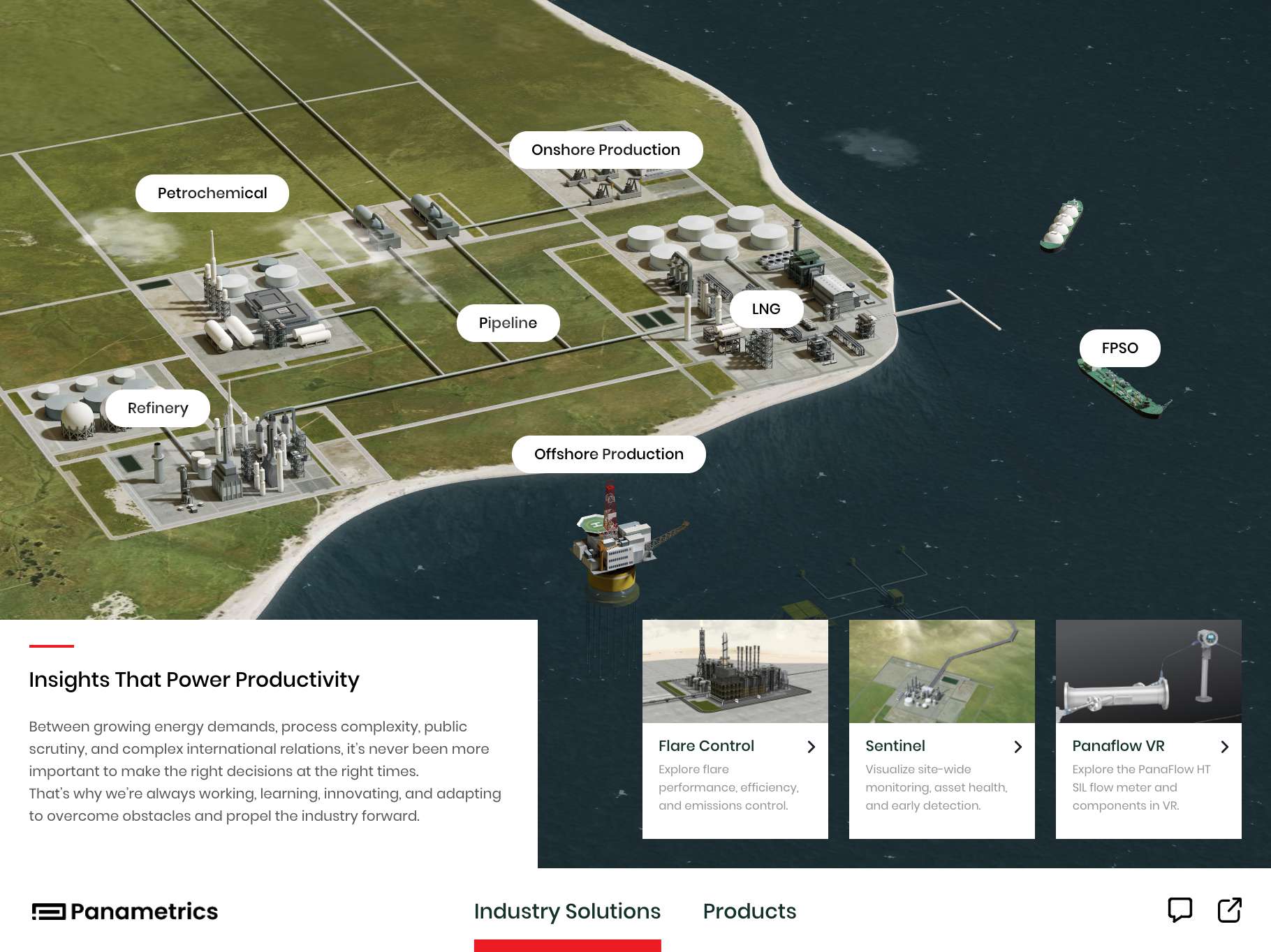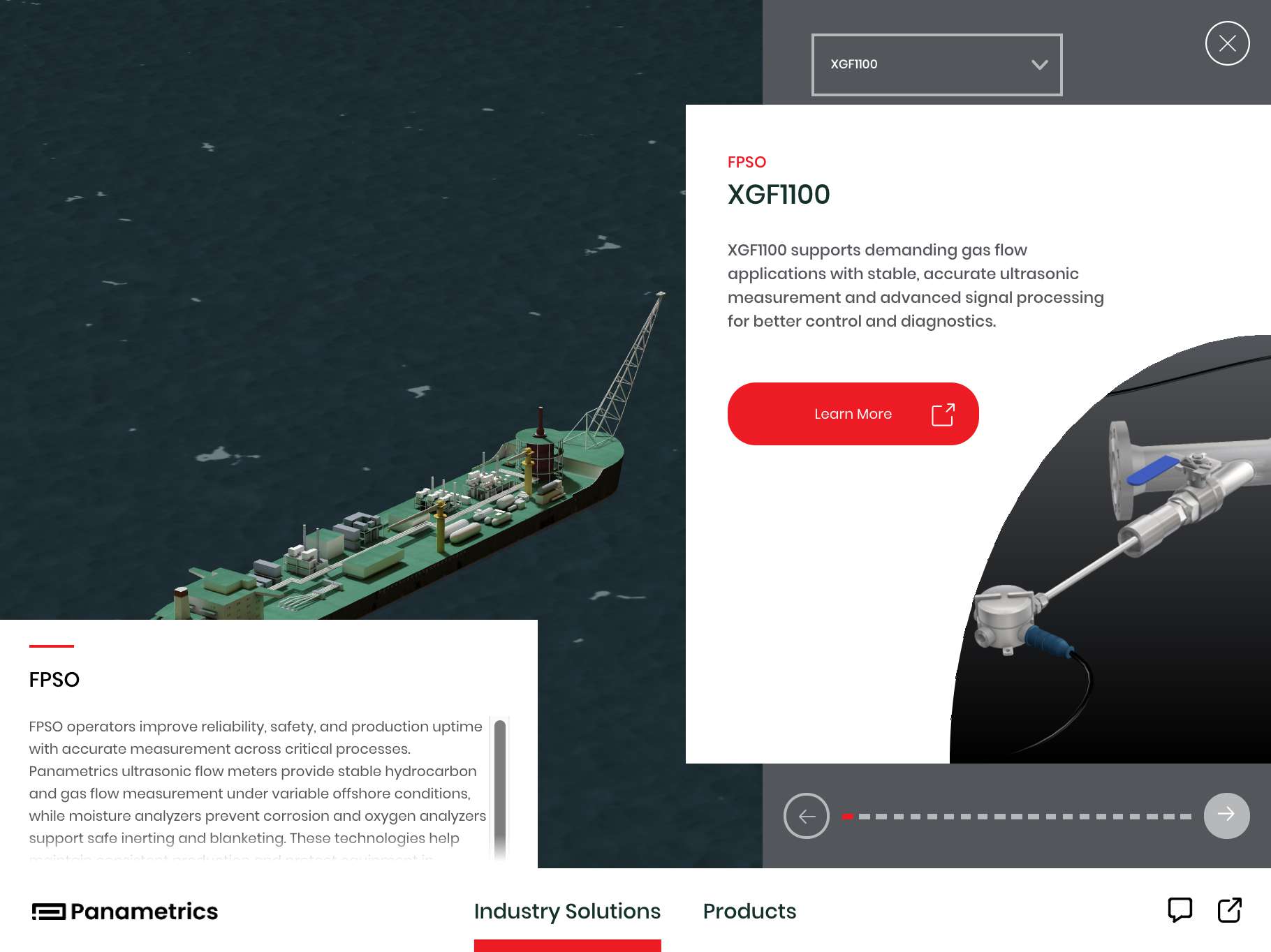 The Panametrics application portfolio provides an interactive experience for exploring some of Panametrics' solutions. It offers an engaging view into Panametrics’ advanced measurement and analysis technologies, showcasing trusted innovations built on more than 50 years of expertise in ultrasonic flow, moisture, gas, and oxygen measurement. Designed to support multiple industries, these solutions help drive performance, reliability, and regulatory compliance across daily operations.